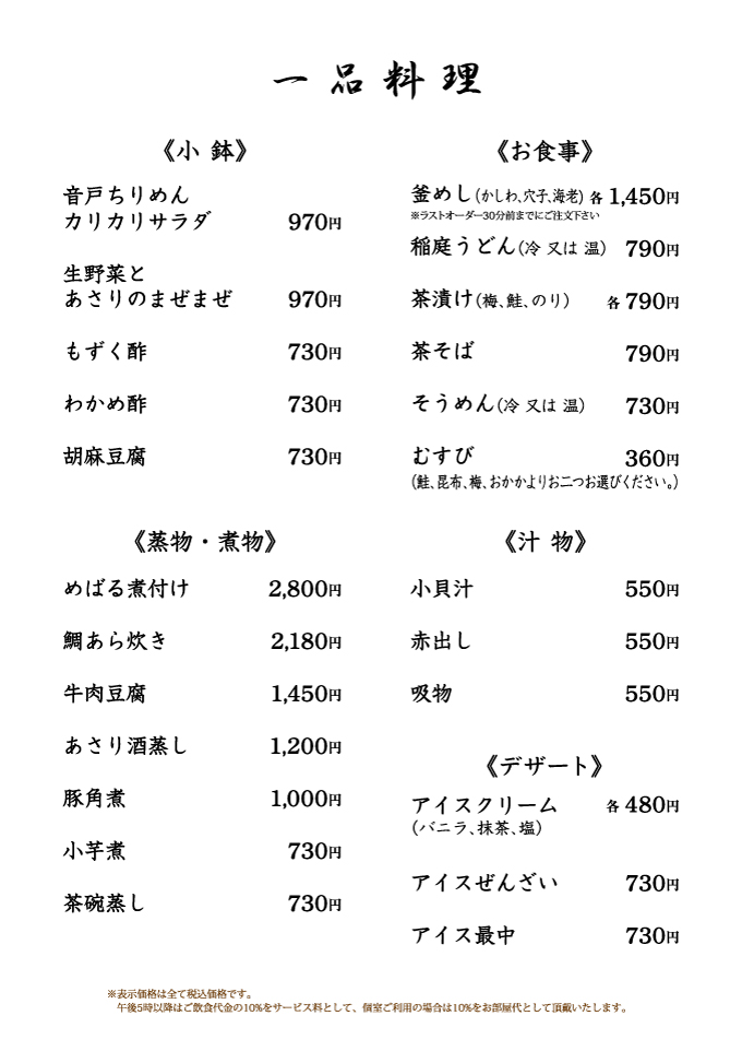 | 目安の料金 | (夜)8,000円~、サービス料10%(夜のみ)、個室料10%(夜のみ) | |