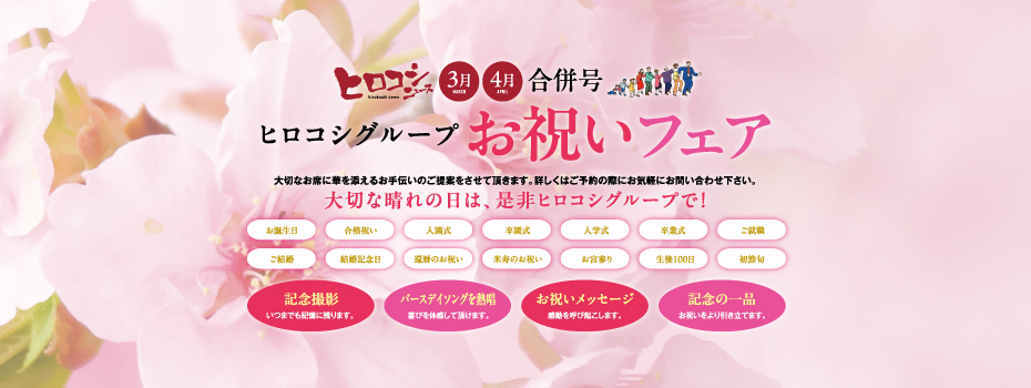 『ヒロコシニュース2026 3月4月合併号 ヒロコシグループお祝いフェア』のお知らせ。