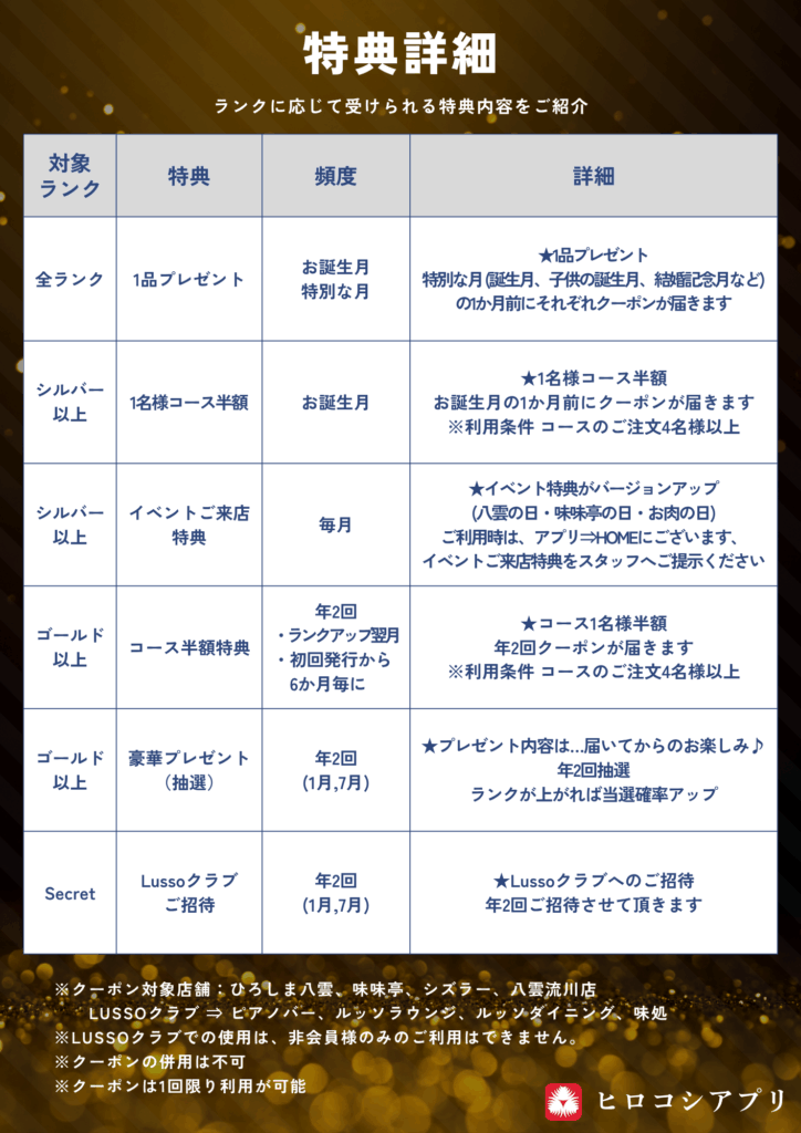 \来店回数に応じてランクアップ/ランクを上げて豪華特典を受け取ろう♪