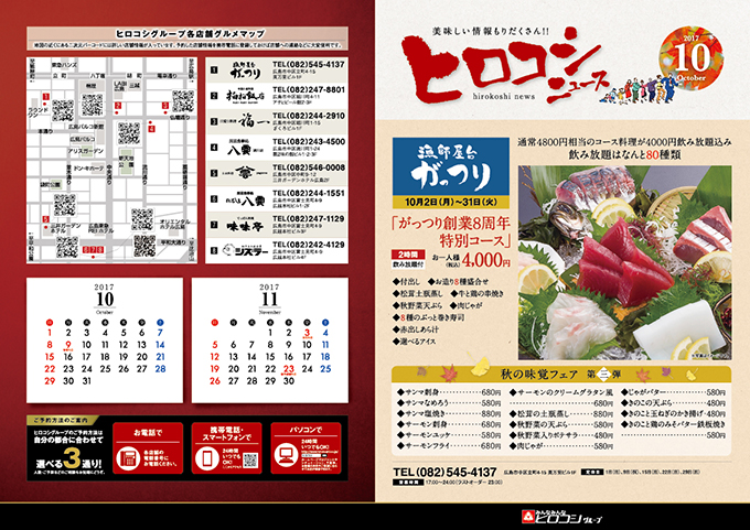 ヒロコシグループ各店の、おすすめグルメ情報『10月 ヒロコシニュース』をインターネットからでも、