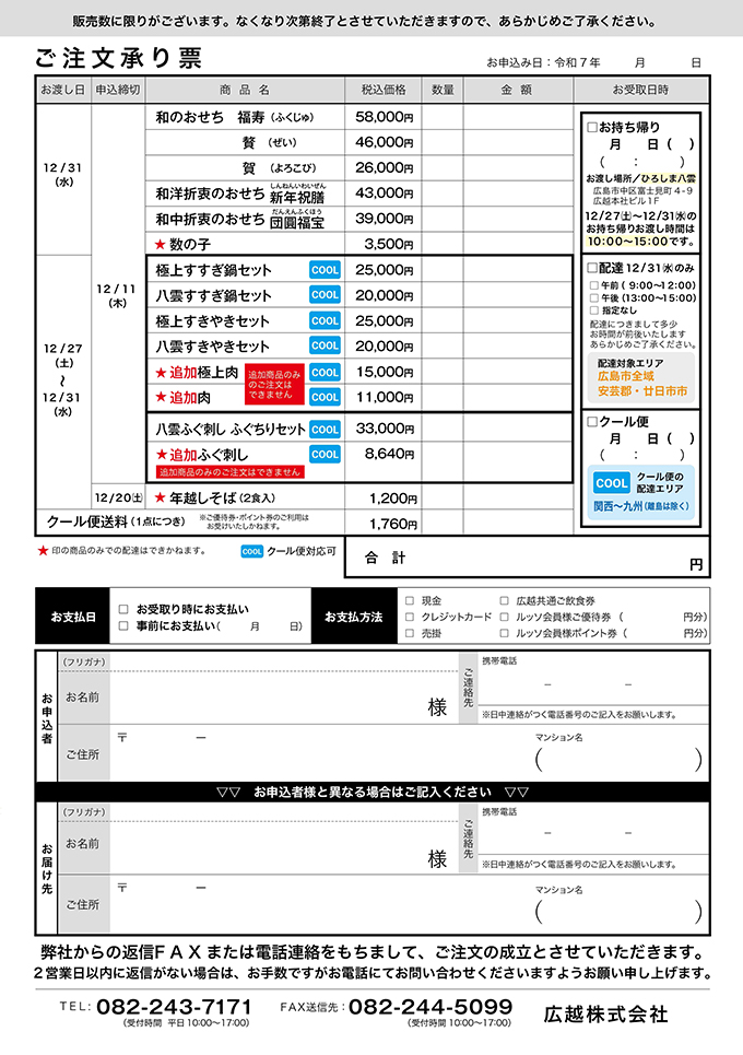 【令和八年(2026年)広越の特選 おせち料理と年末年始のホームパーティお料理(PDF)】 |