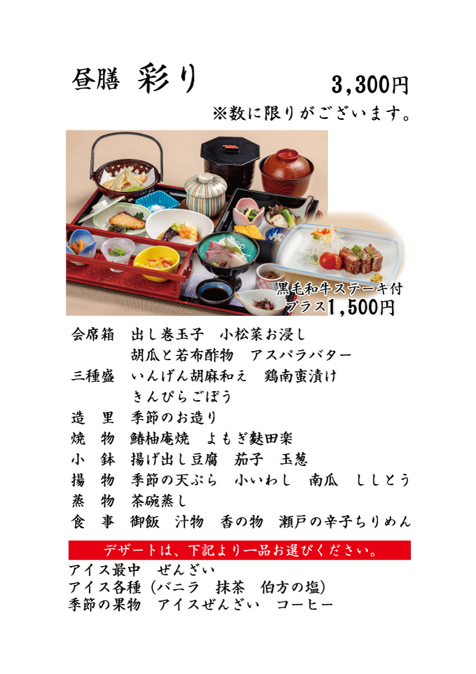 | 目安の料金 | (夜)8,000円~、サービス料10%(夜のみ)、個室料10%(夜のみ) | |