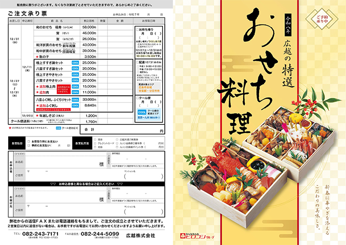令和八年(2026年)広越の特選 おせち料理と年末年...